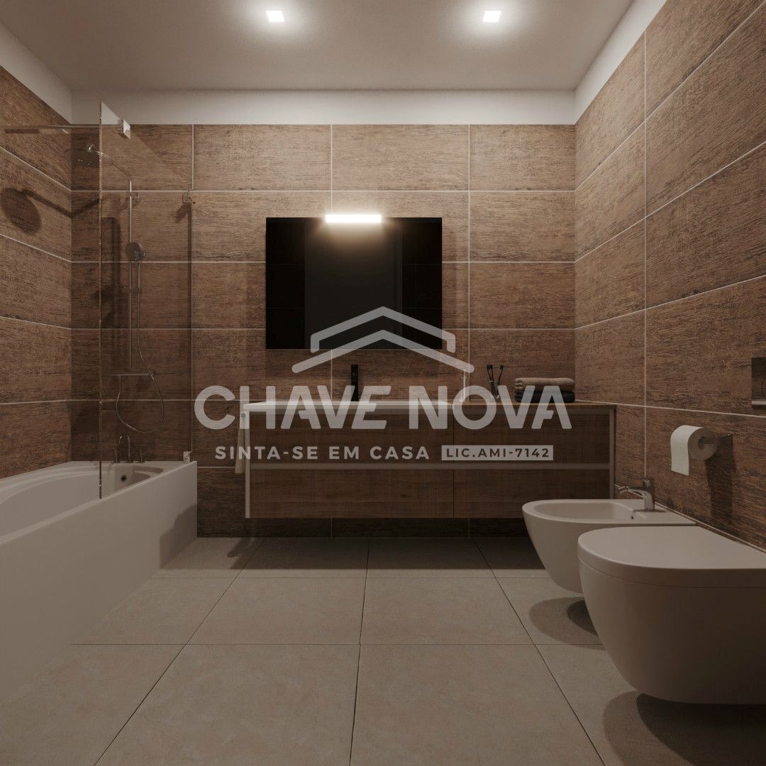 Casas de Banho com louças suspensas, 1 base de duche com chuveiro, será equipada com 1 banheira de hidromassagens e 2 banheiras.