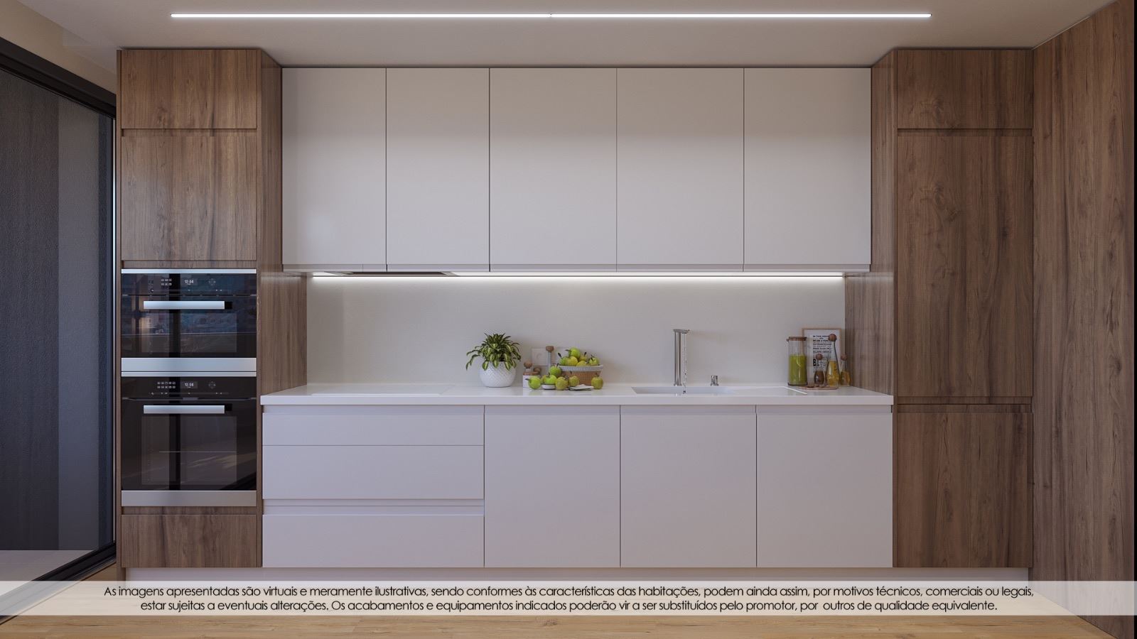 - Madeiras lacadas a branco (rodapés contraplacado hidrófugo, portas interiores em MDF, roupeiros em MDF);