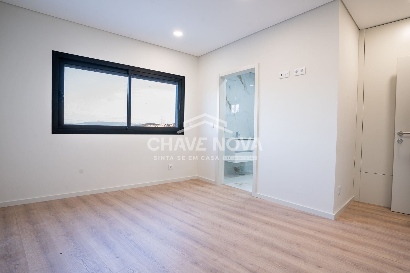 Subindo ao piso superior, encontramos duas suítes adicionais, ambas com armários embutidos, assegurando uma excelente capacidade de arrumação.