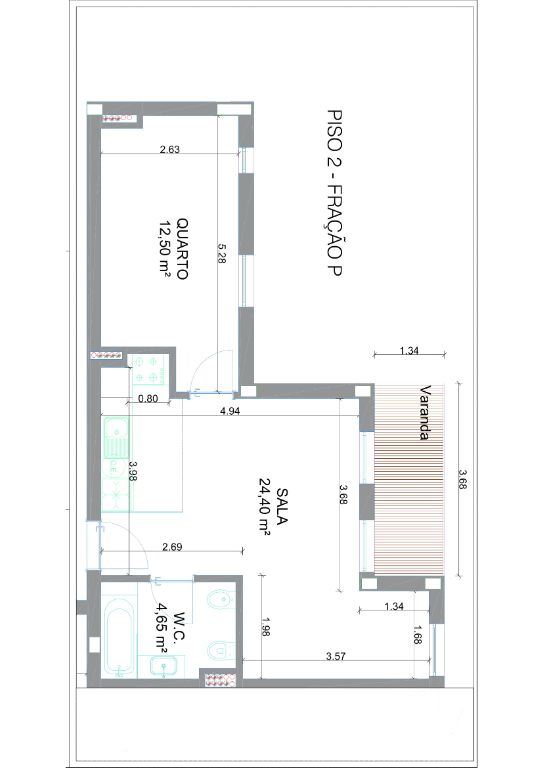 Cozinha + Sala (Open Space): 24,40m²