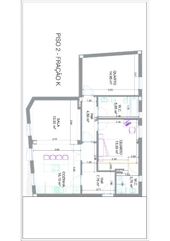 Este apartamento é de tipologia T2 e tem duas frentes, uma a Poente e outra a Nascente.