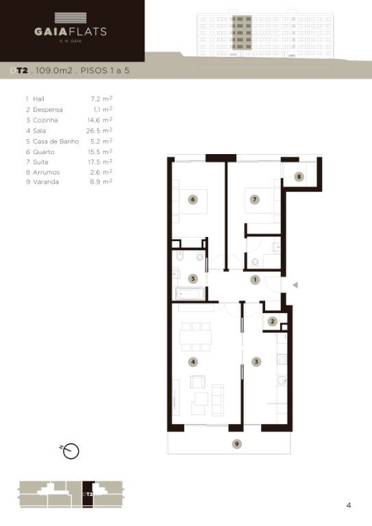Apartamentos T2 situados no empreendimento GAIA FLATS.