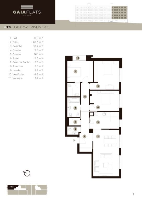 Apartamentos T3 situados no empreendimento GAIA FLATS.