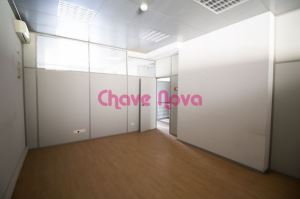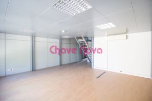 Loja com 292m² dividida em várias salas amplas com divisórias em material amovível e reaproveitável. Uma das salas tem um aproveitamento em altura tendo sido feito um piso elevado. O imóvel tem wc e dispõe de lugar de garagem e arrumo na cave do edifício.