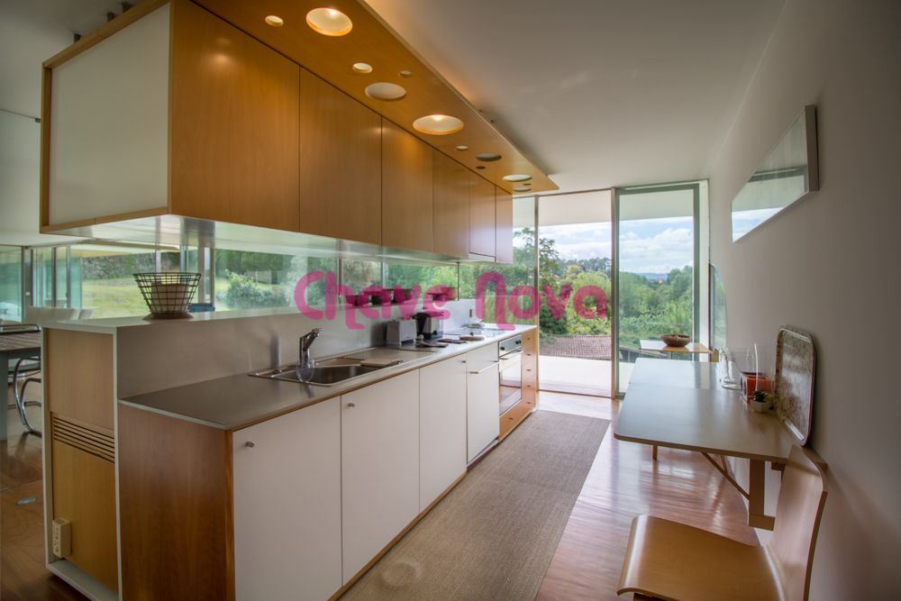 Moradia individual em Palmeira - Braga, implantada em terreno com 5000m2 com varanda panorâmica e vista para o rio Cávado.