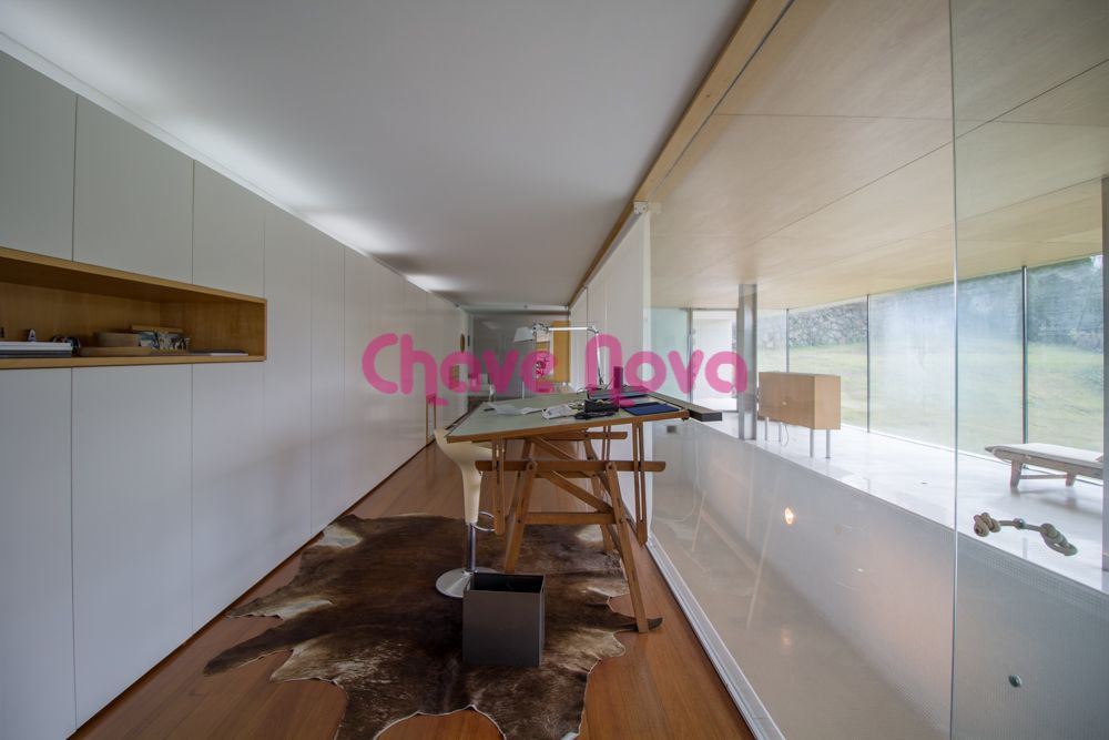 Com uma área últil de 315m2 distribuídos por 3 quartos, escritório, cozinha equipada, lavandaria, armários embutidos e mobiliário fixo em MDF lacado e Faia, pavimento em soalho Afizélia, tetos estucados em ou madeira Faia, aquecimento ventilo convetores com caldeira, piscina interior com desumidificador, filtro e aquecimento.